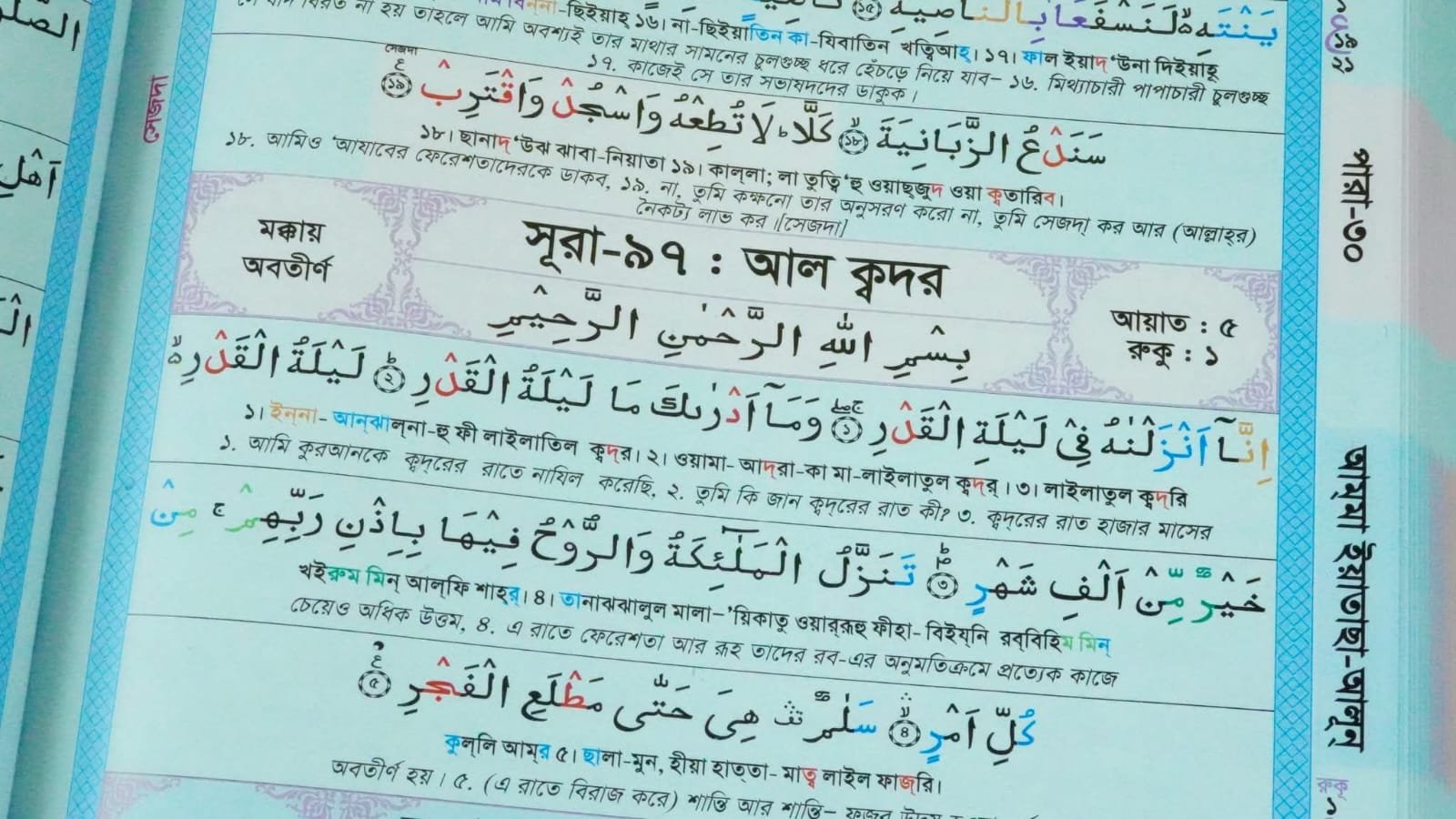 * Color Coded Tajweed: তাজবিদের নিয়মগুলো রঙিন সংকেতে চিহ্নিত, যা শুদ্ধ তিলাওয়াত নিশ্চিত করে।